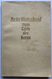 | 12:23, 11. Mai 2022 | Mutterhand.JPG (Datei) | 4,66 MB | An der Mutterhand zum Tisch des Herrn Ein Hilfsbuch für die Mütter der Erstkommunionkinder von Klara Witz / M. Schuhmacher-Köhl, 102 Seiten, kartoniert und gebunden (1,25 RM / 2,- RM) Illustrationen von Lore Friedrich-Gronau, Foto Copyright Rensmann | 1 | |